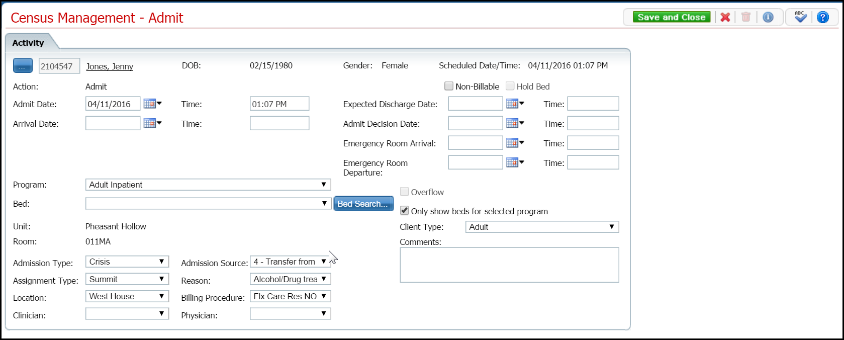 Use this task to admit a client to a bed in a unit. This topic explains how to: