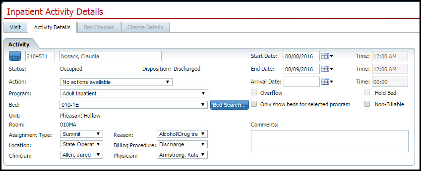 Note: You can only discharge a patient with a status of Occupied or On Leave.