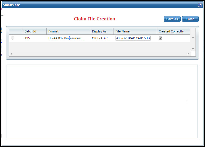 If you want to save a copy of the claim file, click the Save As button to save a copy of the file.