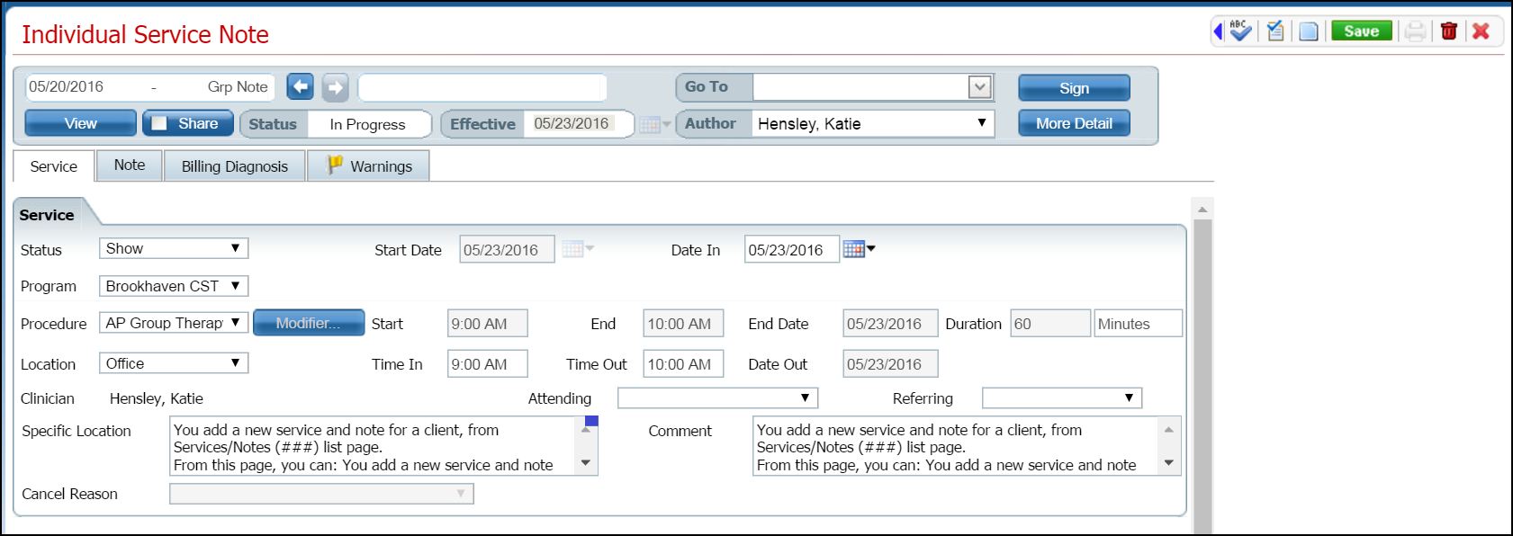 Make changes on the Billing Diagnosis tab for this service, if needed.
