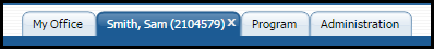 Current client - if a client account is open, the name is listed in the client tab. Refer to the darker blue tab in the figure below.